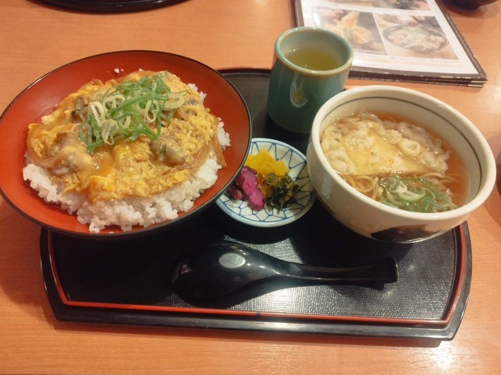 お風呂に入り、食事もとる。相生の名物は牡蠣なので牡蠣とじ丼&姫路えきそばのセット。牡蠣は美味しいですよね~♪♪