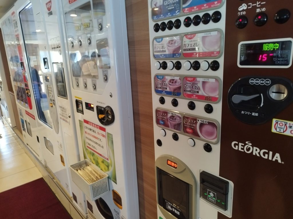 船内には、コーヒーやカップ麺、パンの自販機などがありました。