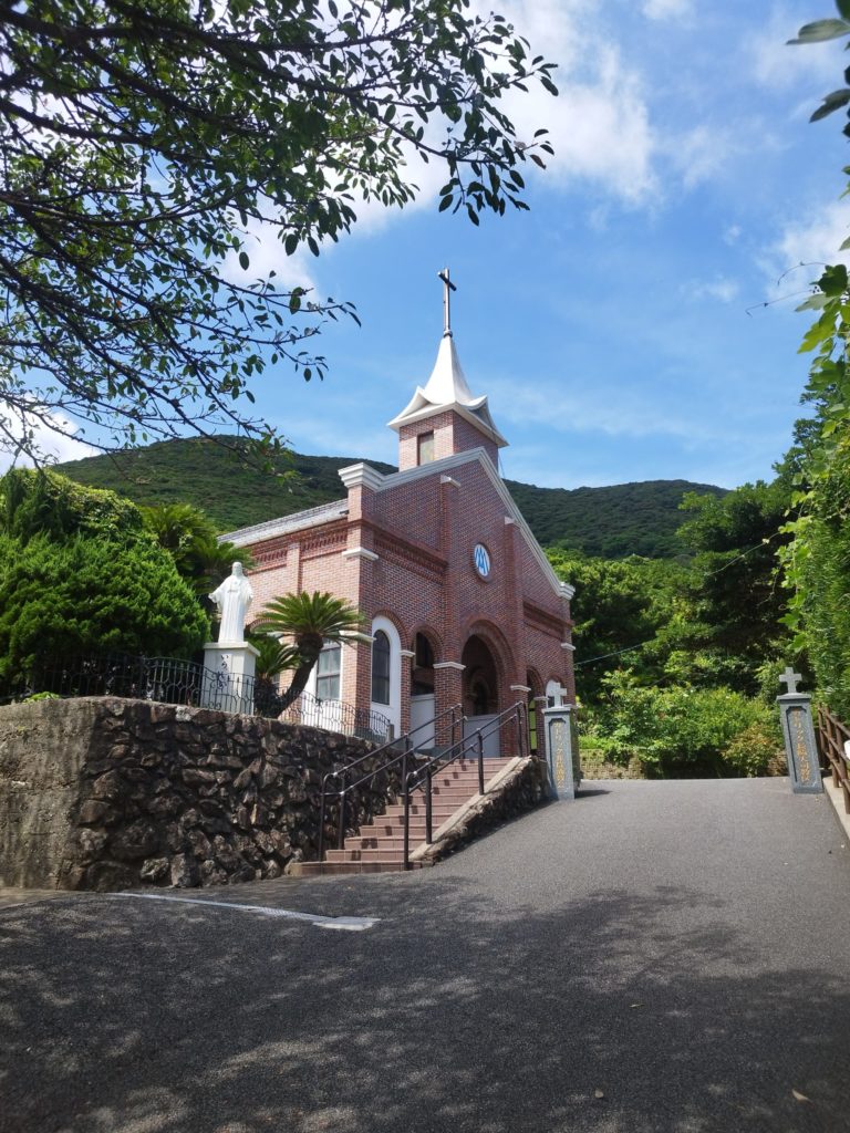 続きまして~60分ほど走り、島の西の方へ。ルルドの泉のある井持浦教会(いもちうらきょうかい)へ。
