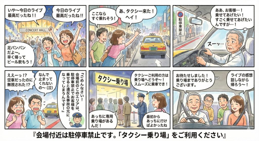 【ライブ終わりは、タクシー乗り場から乗って欲しいねっていう啓発漫画】